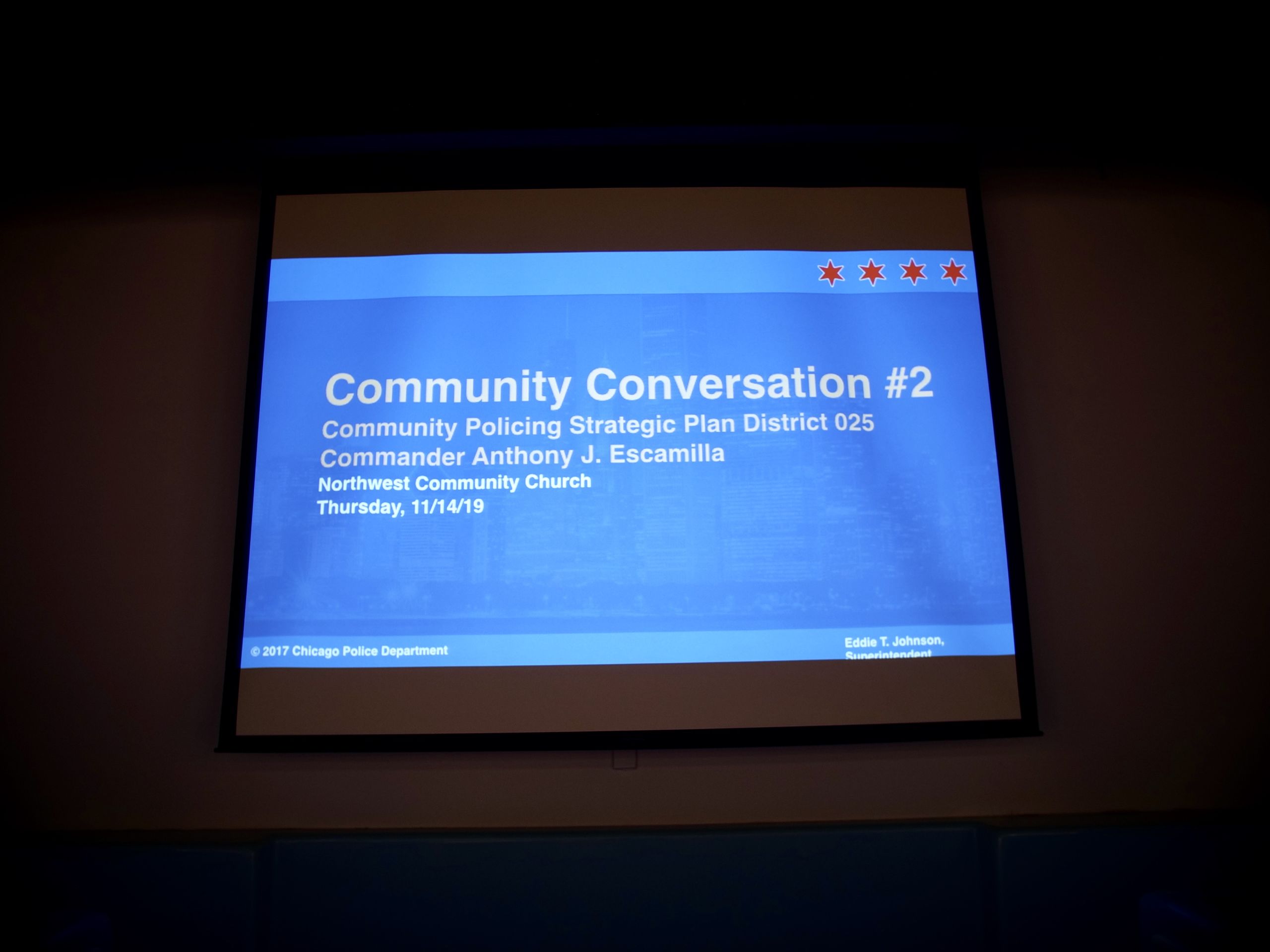 The Neighborhood Policing Initiative Program will expand to the 15th District on Chicago’s West Side in December 2019. Retiring Chicago Police Superintendent Eddie Johnson says he hopes it will eventually go citywide. (WBEZ/Katherine Nagasawa)