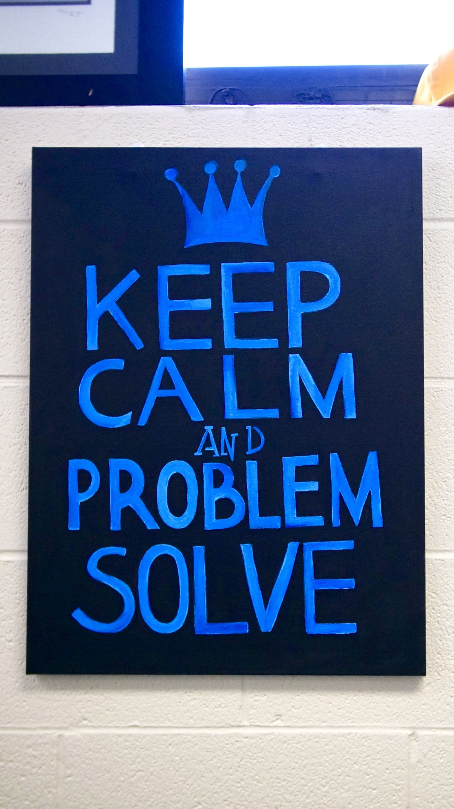 District Coordination Officer Antoinette Alcazar paints often to relieve stress. She says this painting was created to remind officers of the work they do as guardians of the city. (WBEZ/Katherine Nagasawa)